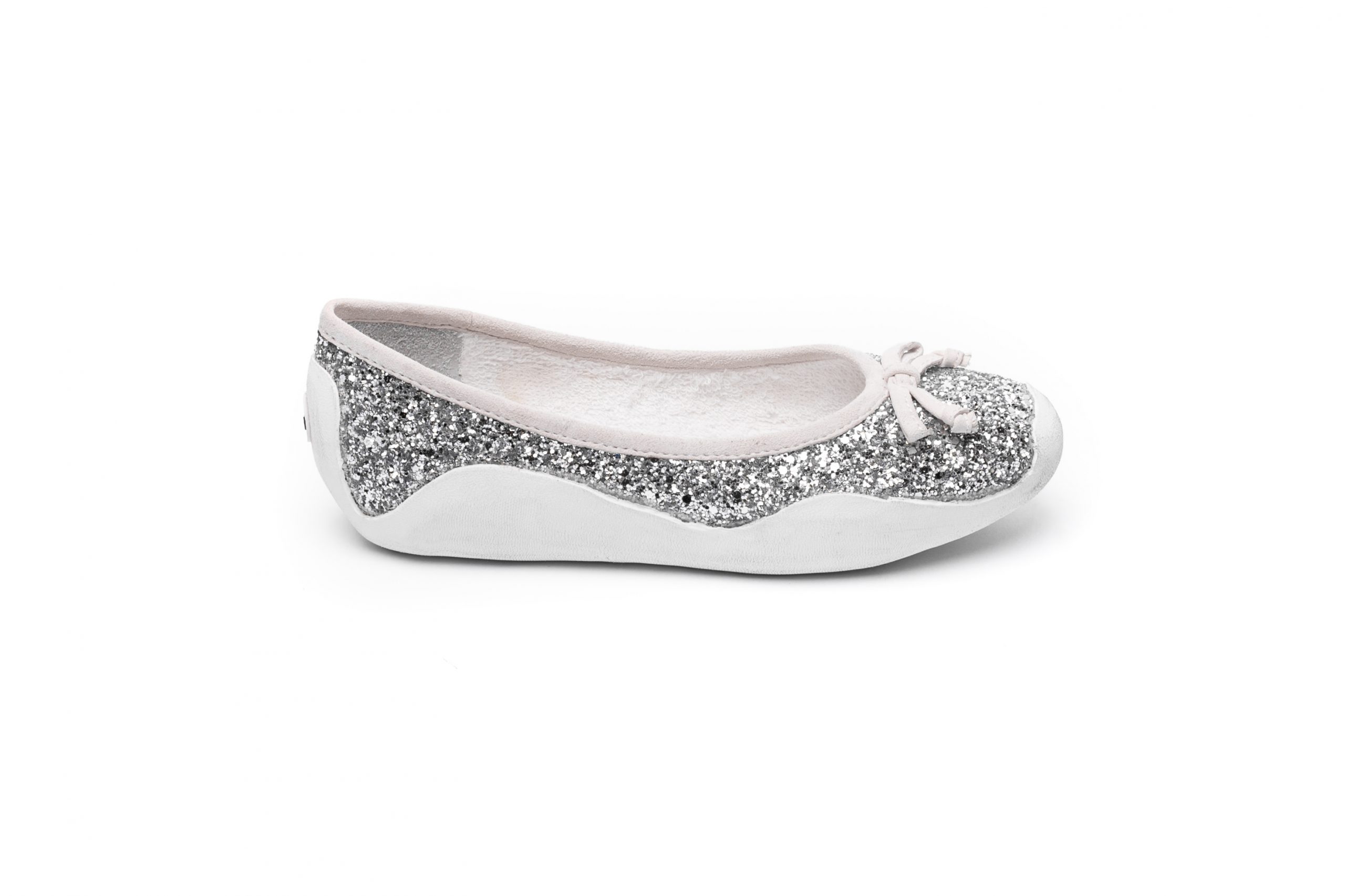 Le nuove ballerine in glitter vari colori con bordo e fiocco pelle bianco .